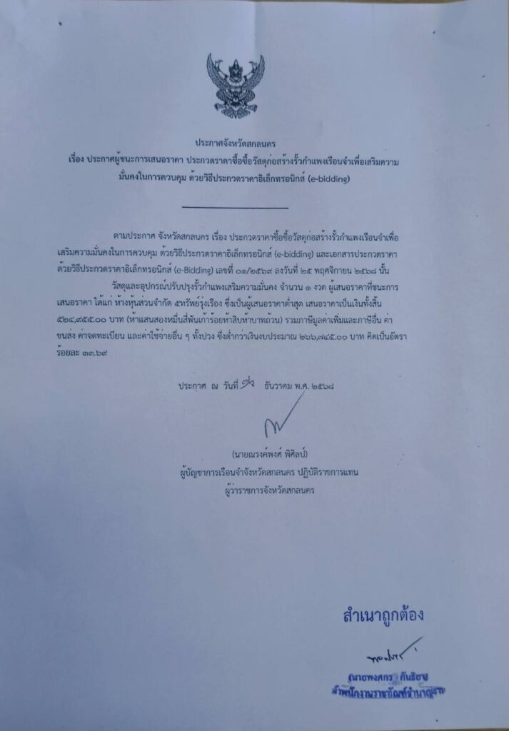 จัดชื้อวัสดุก่อสร้างรั้วกำแพงเรือนจำเพื่อเสริมความมั่นคง